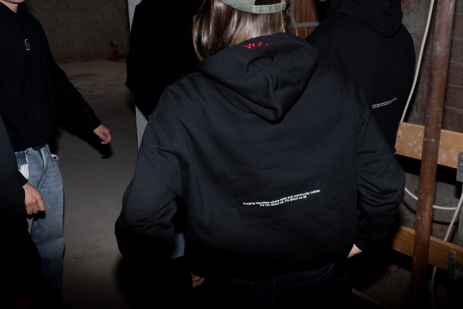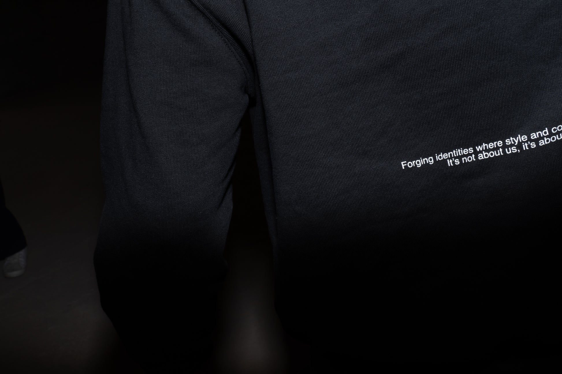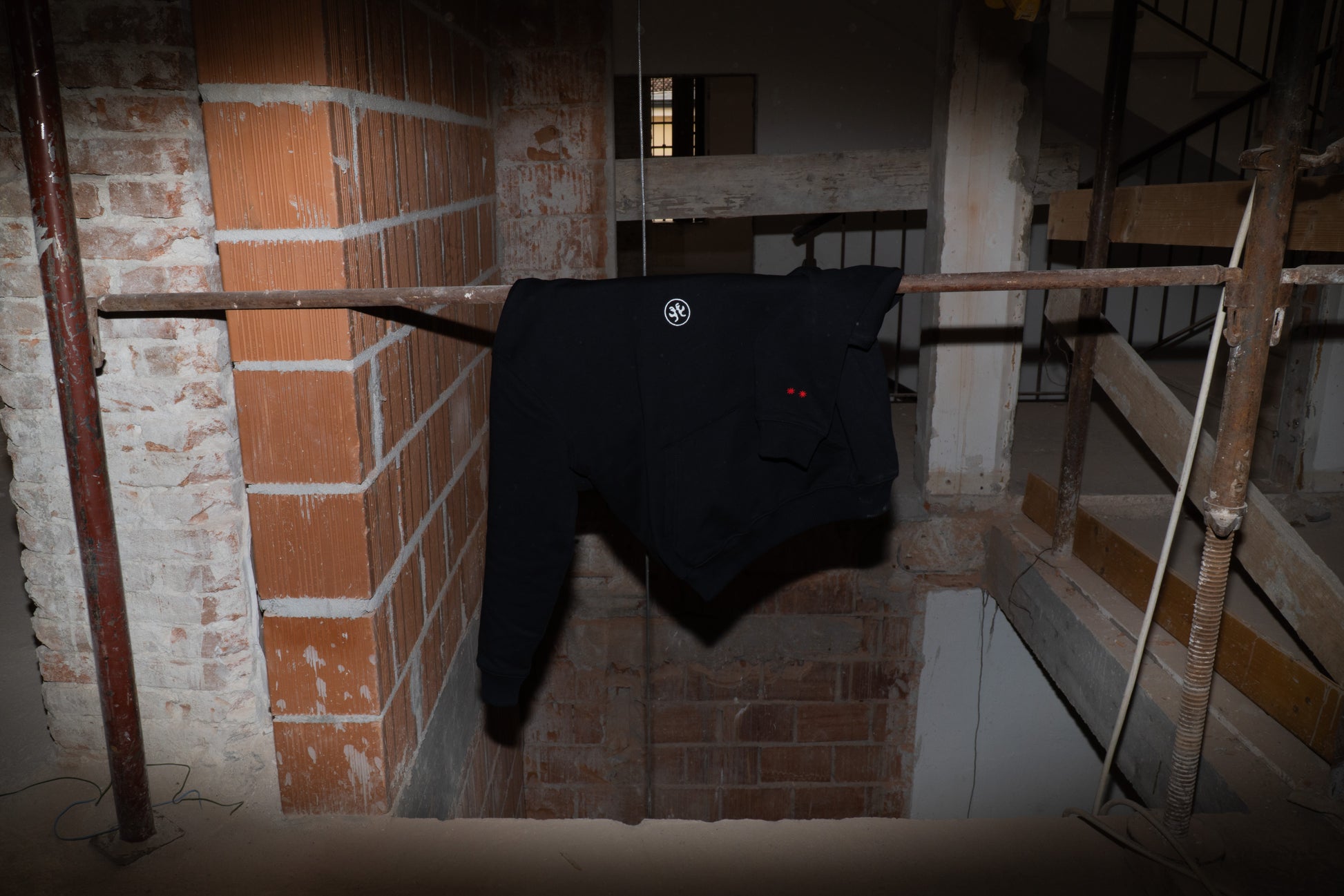 MANICA A GIRO. CAPPUCCIO A DOPPIO STRATO NEL TESSUTO PRINCIPALE. FETTUCCIA IN JERSEY ALL'INTERNO DEL COLLO. MEZZALUNA ALL'INTERNO DEL COLLO NEL TESSUTO PRINCIPALE. IMPUNTURA SINGOLA SULLO SCOLLO E INTORNO AL CAPPUCCIO. FONDO MANICA E BORDO INFERIORE A COSTINE 2X1. DOPPIA IMPUNTURA SU GIROMANICA, POLSINO E BORDO INFERIORE. TASCA A MARSUPIO SUL DAVANTI.