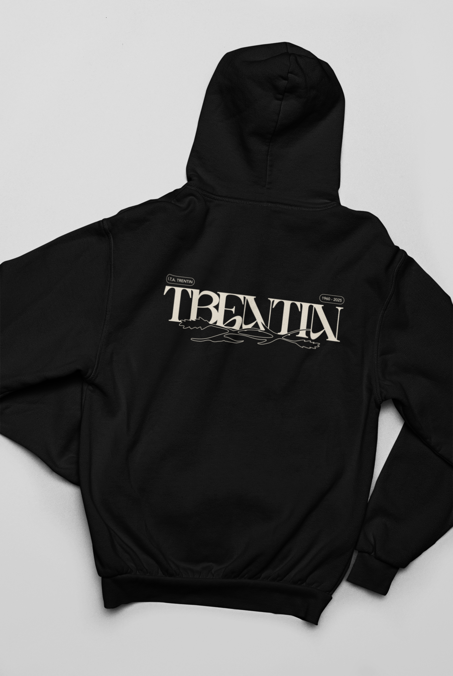 TRENTIN- Felpa Cappuccio Nera stampa Panna