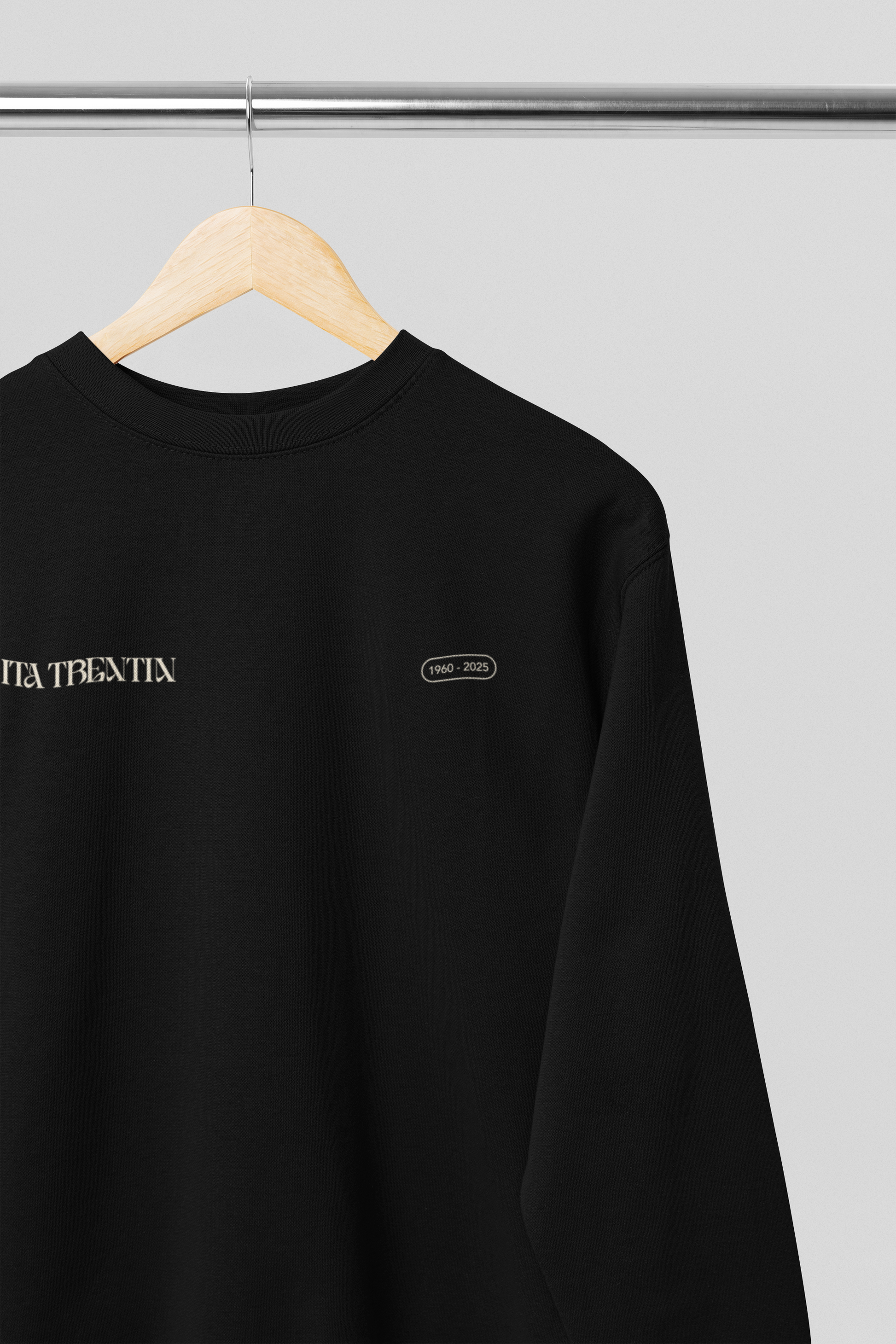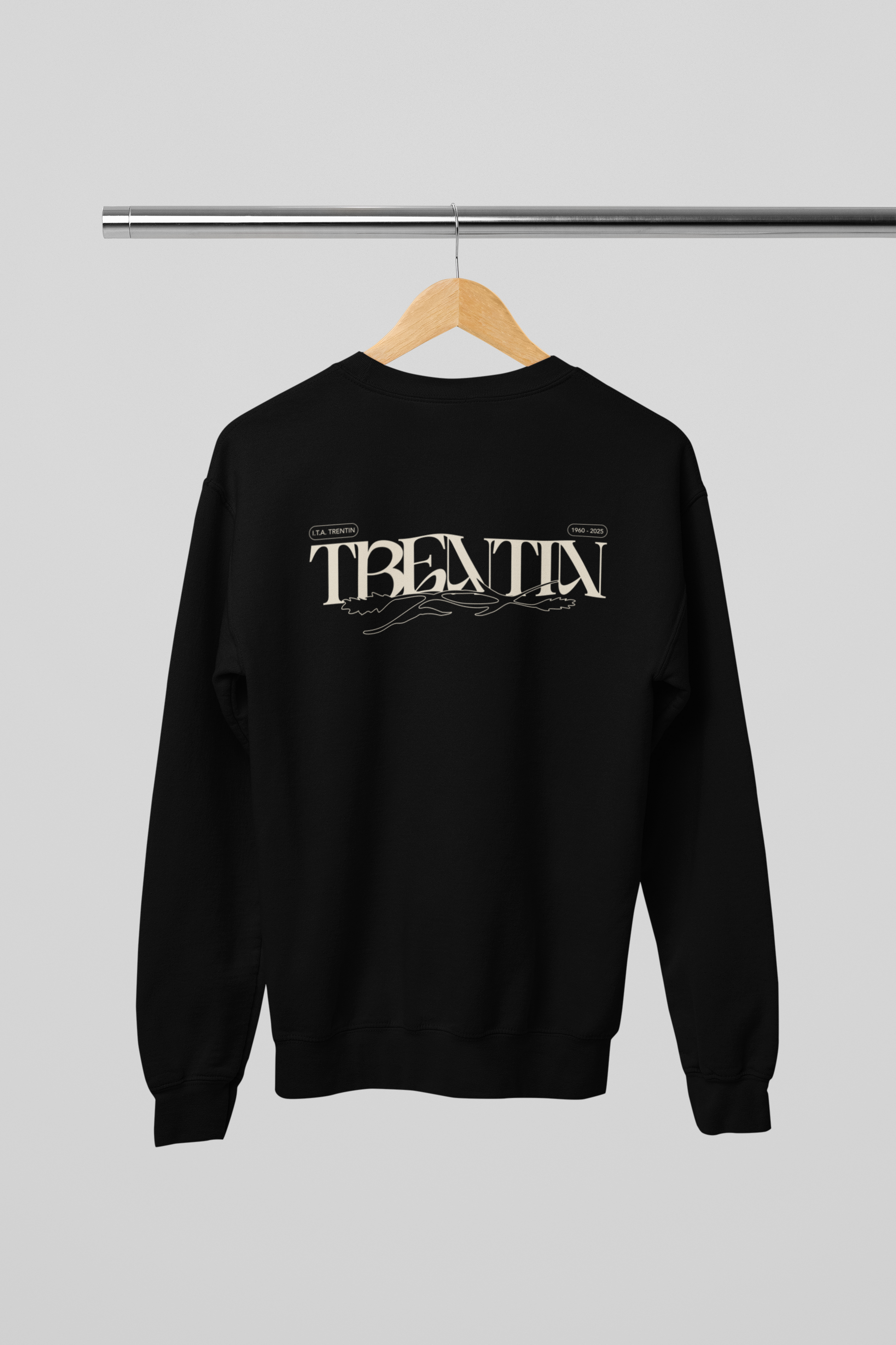 TRENTIN- Felpa Girocollo Nera stampa Panna